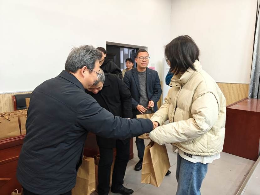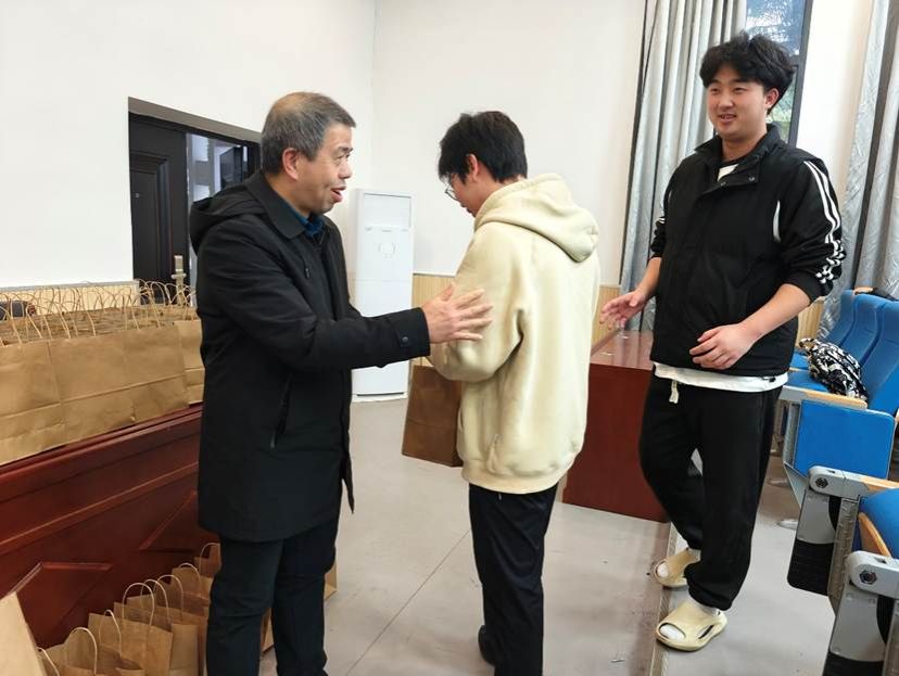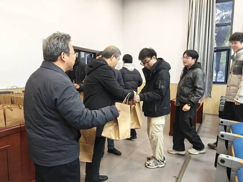 接过满载心意的礼品袋,同学们脸上绽放出温暖的笑容,纷纷表示真切感受到了学院浓厚的关怀与支持。这份心意不仅驱散了冬日的寒意,也化作了前行的信心与力量。相信带着师长的祝福,同学们定能在考场上从容执笔、不负耕耘,最终抵达心之所向的彼岸。