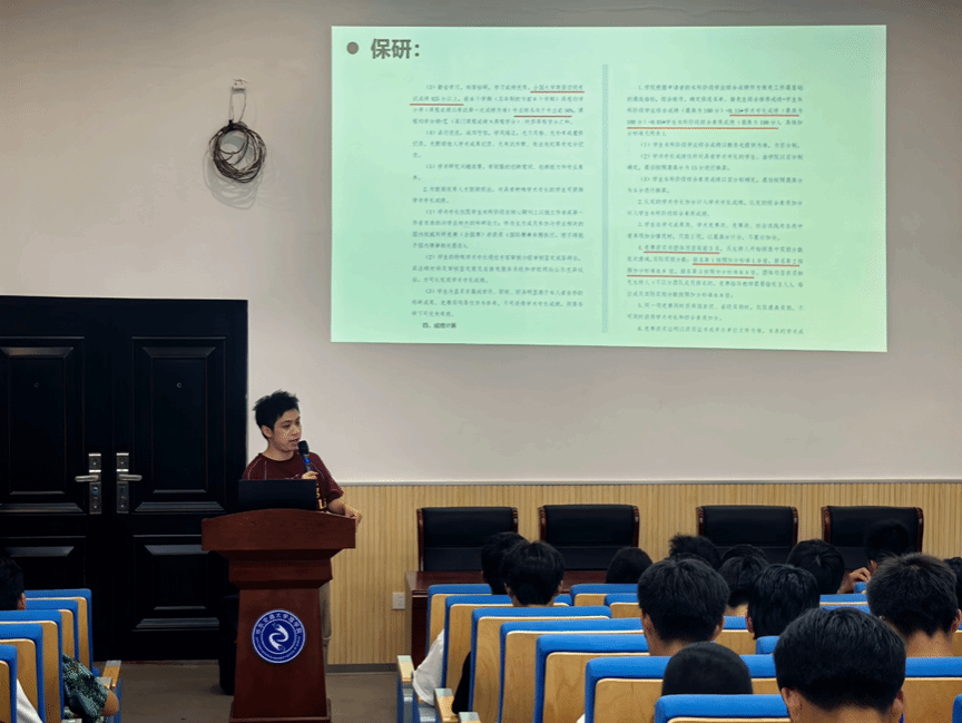 首先,马子鑫学长围绕“大学怎么过”这一主题展开分享,重点从保研与就业两个方向进行阐述。在保研方面,他详细介绍了需要提前准备的硬性条件,并分享了诸多有助于成功保研的实用方法与经验;在就业方面,马子鑫学长也为大家推荐了许多全面且便捷的信息渠道,为同学们的生涯规划提供了清晰、有益的参考。