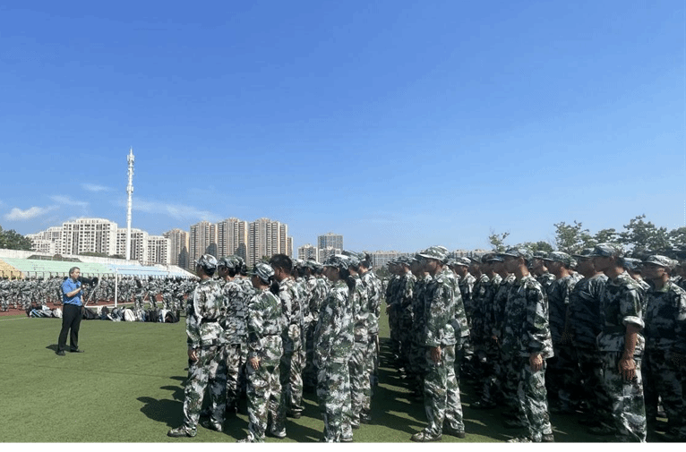 训练场上,25级新生身着迷彩服,在教官的带领下,正进行着队列、军姿等项目训练。他们身姿挺拔、眼神坚毅,动作整齐划一,尽显青春朝气与顽强毅力。看到学院领导和老师的身影,新生们的目光中满是期待。