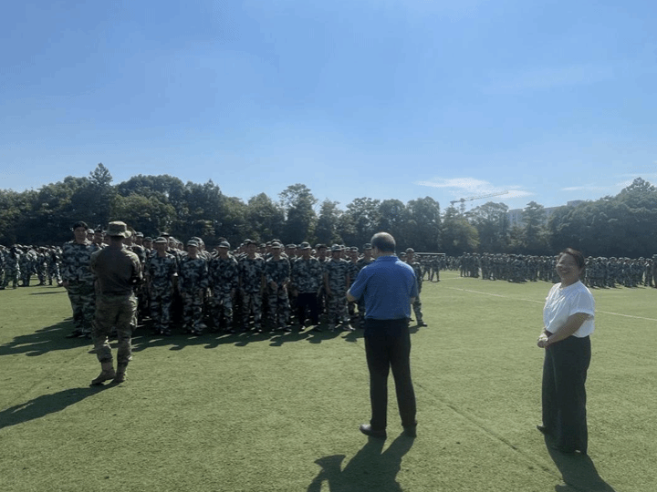 谢幸荣副书记走到新生中间,和大家亲切交流,了解大家的军训进度与需求。她表示,学院始终牵挂着军训中的同学们,希望大家能在严格的训练中,培养纪律意识与团队精神,同时也要照顾好自己,以健康的身体和积极的心态投入训练。
