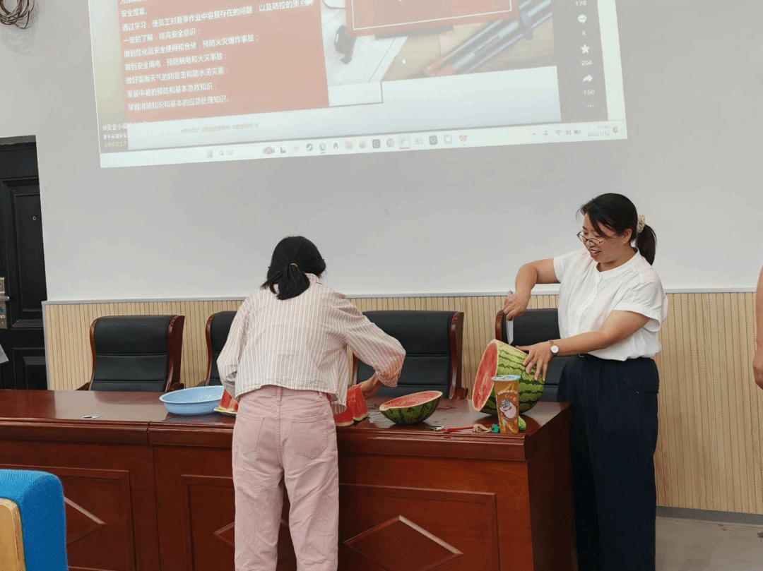 会后,同学们开心的品尝了学院精心准备的甜美西瓜和茶饮,感受着炎炎夏日中的一丝“清凉”。